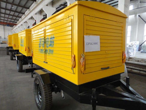 移動發電機組設計獨具創新,機動性高、重心低、制動安全、制造精良、外形美觀。拖車車架采用槽梁焊接成框架結構,節點選擇合理、強度高、剛性好;同時裝有鋼板彈簧懸架結構;拖車采用高度可調節插銷式牽引架,適用于各種高度牽引車;采用圓形鋼管焊接直通式車軸,結構緊湊,安全可靠;車架四角設有機械式支撐裝置,配備慣性行車制動、駐車制動和脫離應急制動,確保機組在各種狀況下的安全;車架前端設有支撐輪,具備承受機組垂直載荷的功能的同時還具備導向功能;整車配備轉向和剎車指示燈,同時裝有尾燈標準插頭。