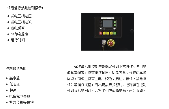 交流發電機為H級絕緣,帶有自動電壓調節器(AVR)